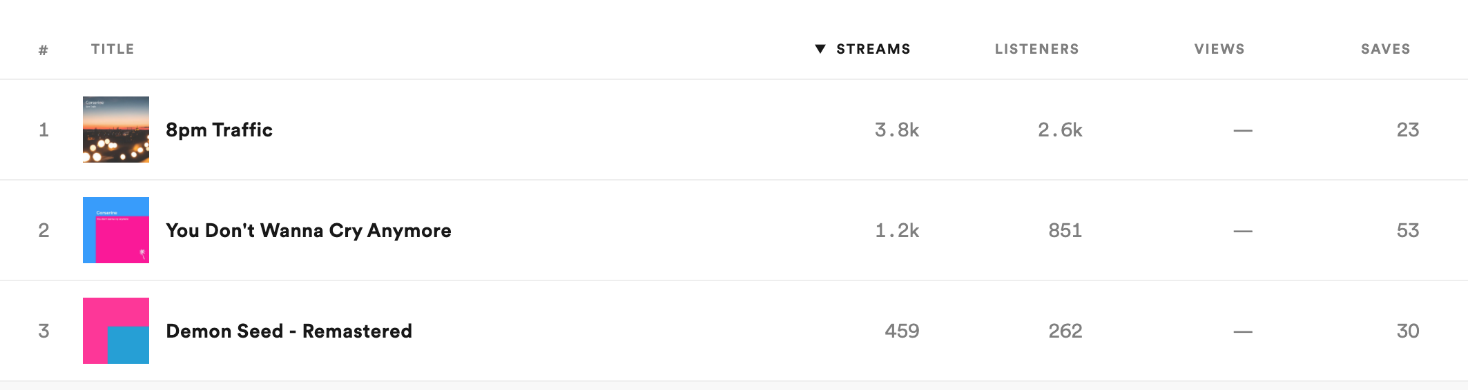 Objectives: increase monthly streams on my Spotify artist page so I can get picked up by Spotify algorithms better. Which in turn means I get on even bigger playlists which in turn means….er… profit?